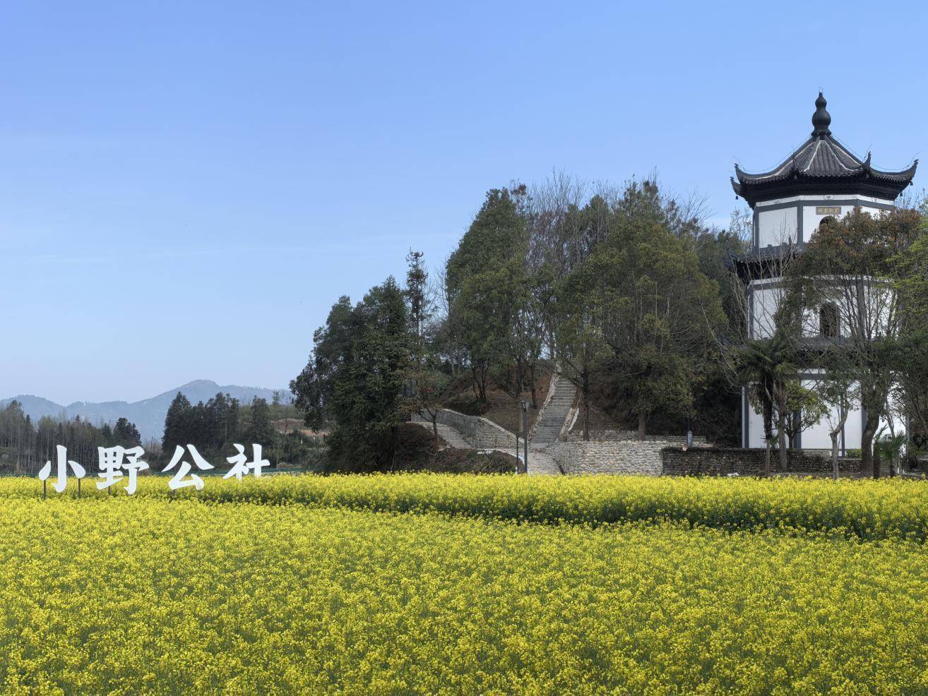 春季花海映古村。小野公社供